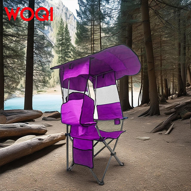 เก้าอี้ชายหาดพับได้ Woqi พร้อมที่วางแก้วและที่วางแขน ทำจากโพลีเอสเตอร์ น้ำหนักเบา พกพาสะดวก สำหรับตั้งแคมป์และตกปลา