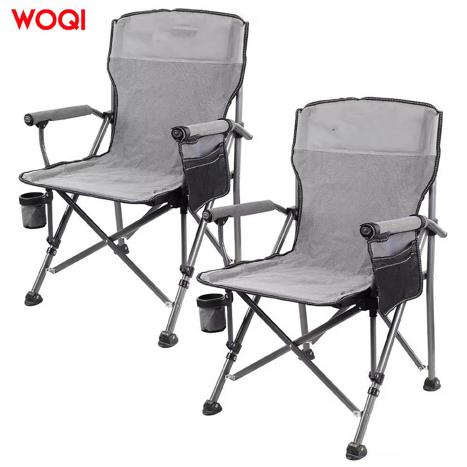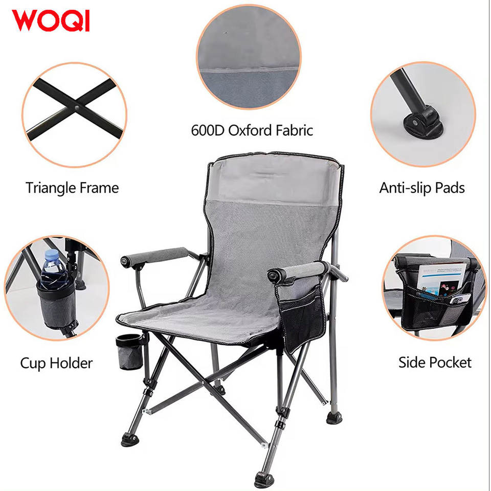 เก้าอี้พับสำหรับตั้งแคมป์กลางแจ้ง Woqi โครงอะลูมิเนียม ผ้า Oxford 600D พร้อมที่วางแก้วและช่องเก็บของด้านข้าง