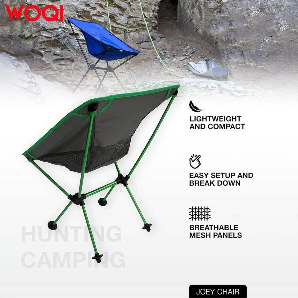 เก้าอี้พับกลางแจ้ง Woqi ขนาด 71x53x53 ซม. โครงอะลูมิเนียม ผ้า Oxford เก้าอี้สำหรับสวนและตั้งแคมป์ สีเขียวอ่อน พกพาสะดวก ขนาดกะทัดรัด