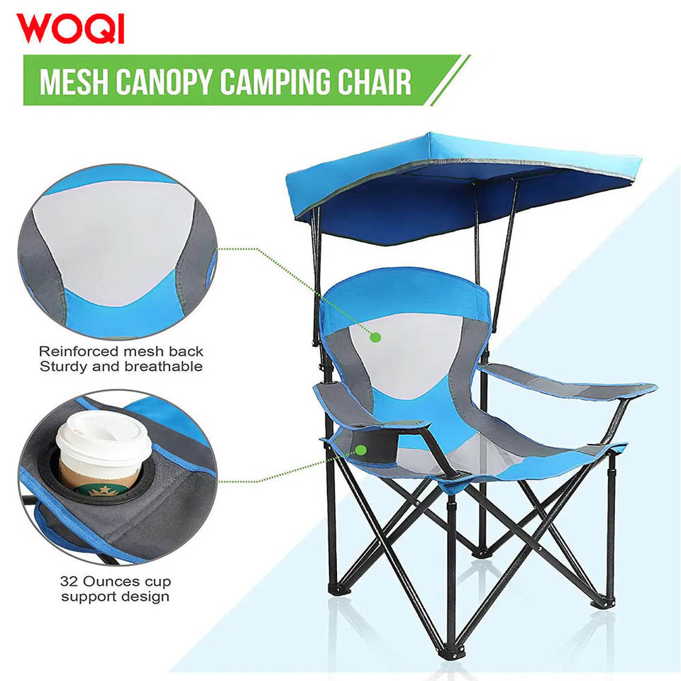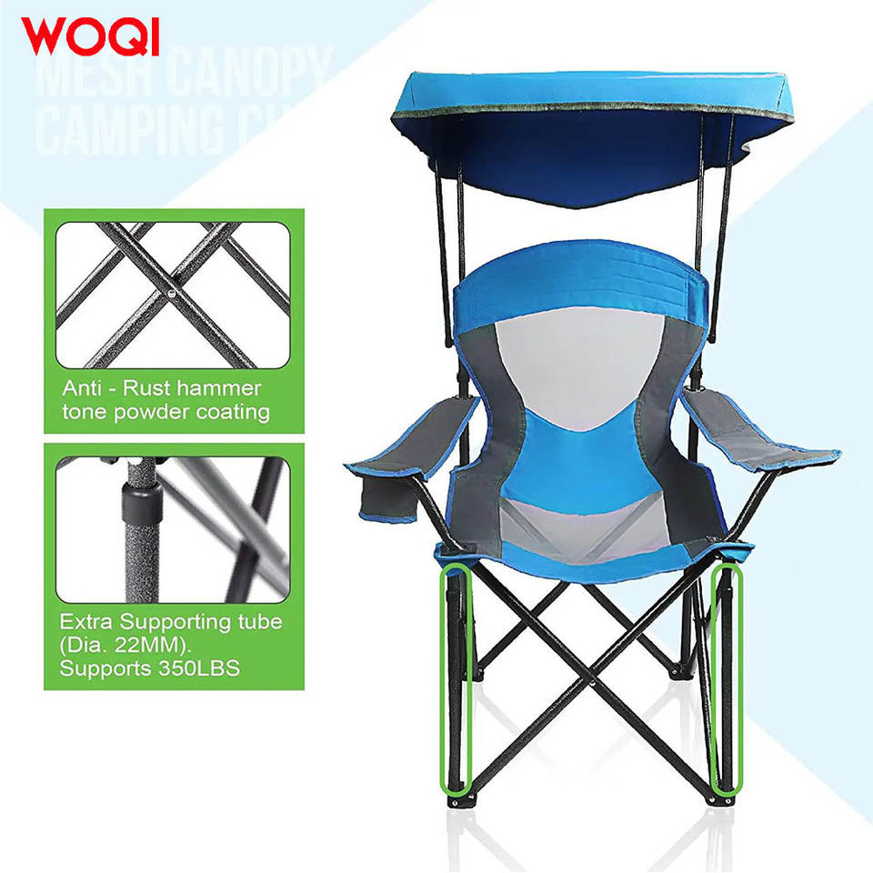 เก้าอี้พับกลางแจ้ง Woqi โครงอะลูมิเนียม ผ้าคลุมสีฟ้าอ๊อกซ์ฟอร์ด สำหรับตกปลา ตั้งแคมป์ พกพาสะดวก