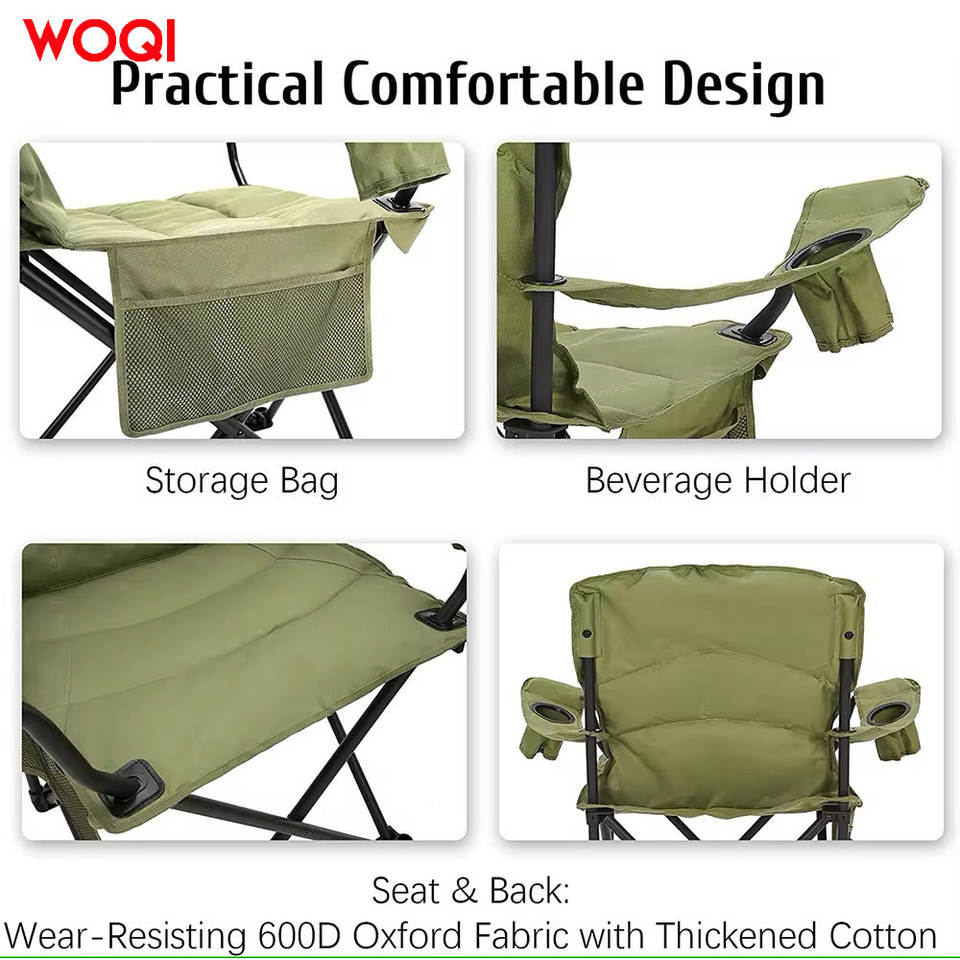 เก้าอี้พับกลางแจ้ง Woqi อลูมิเนียมน้ำหนักเบา พกพาสะดวก เก้าอี้แคมป์ปิ้ง สีเขียวมัทฉะ เก้าอี้สนามรูปทรงสี่เหลี่ยม