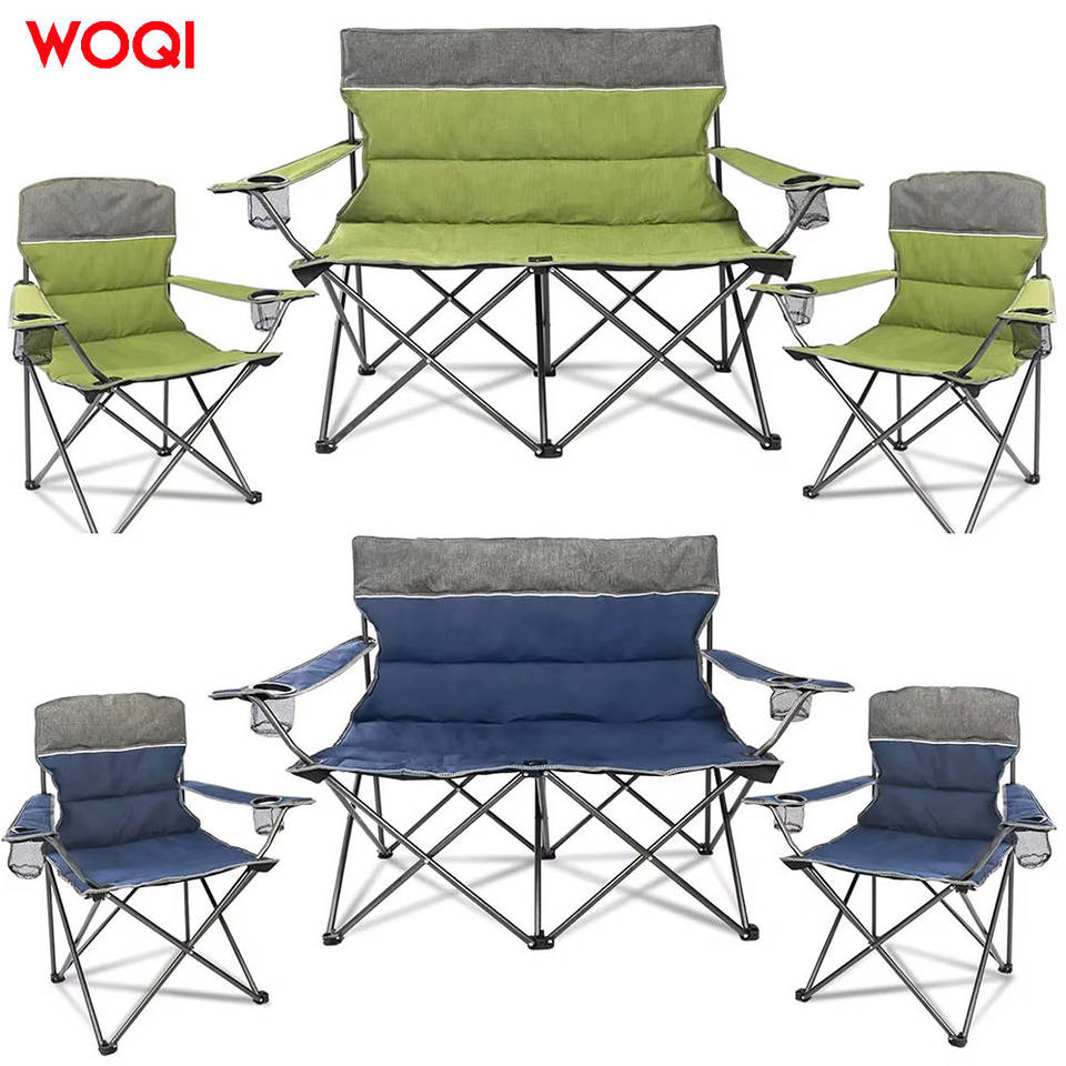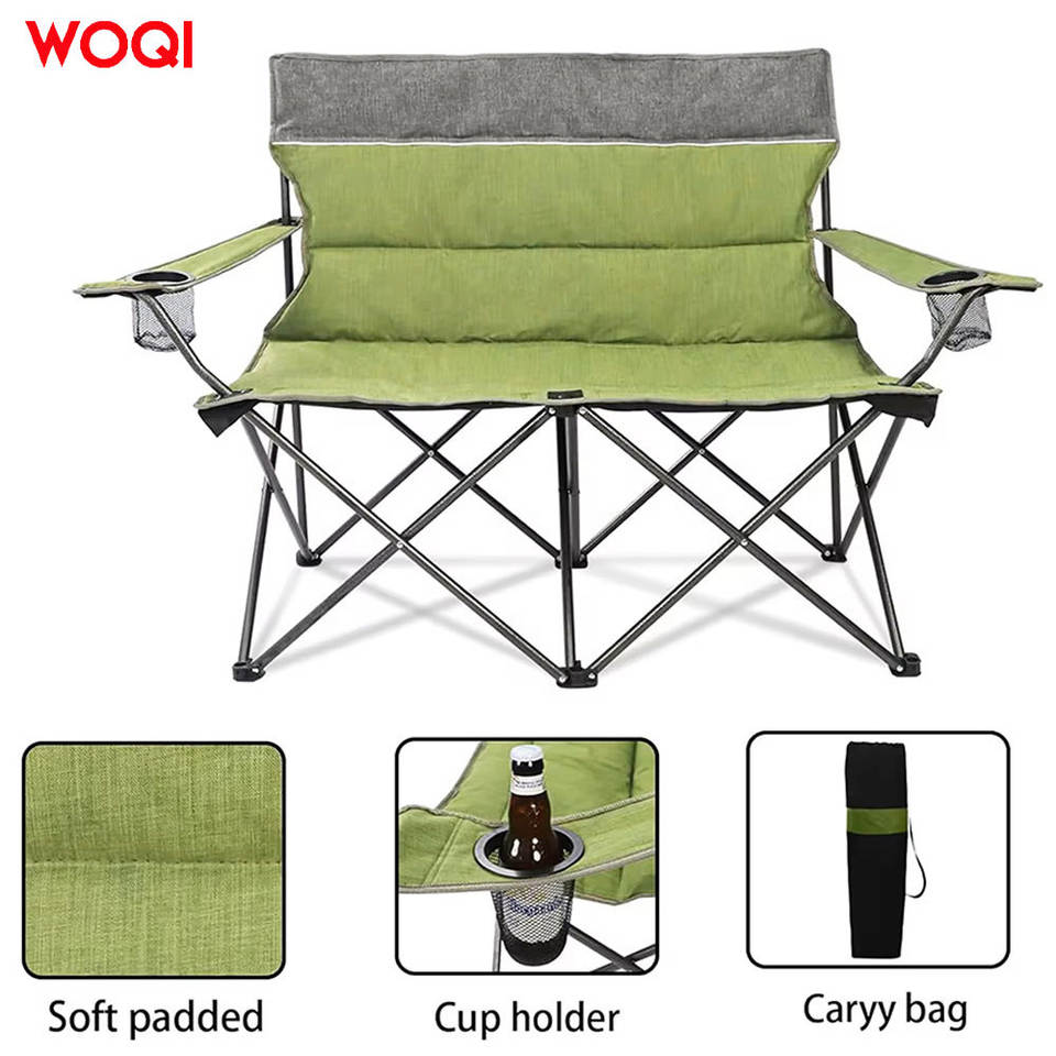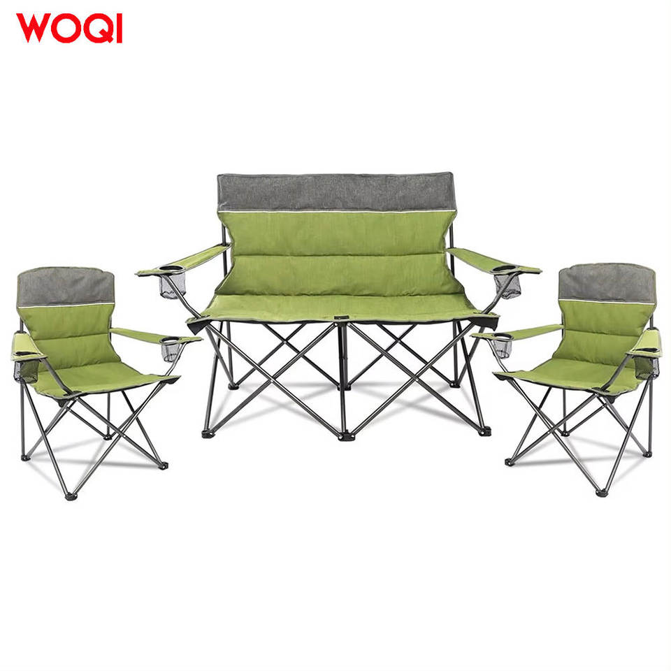 ชุดเก้าอี้พับกลางแจ้ง Woqi สีเขียว โครงอะลูมิเนียม ผ้า Oxford เก้าอี้สำหรับสวนและตั้งแคมป์ พร้อมที่วางแก้ว พกพาสะดวก พับเก็บได้