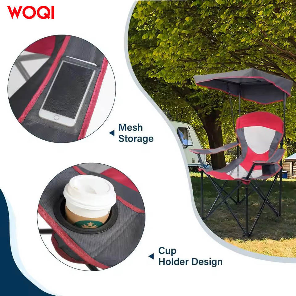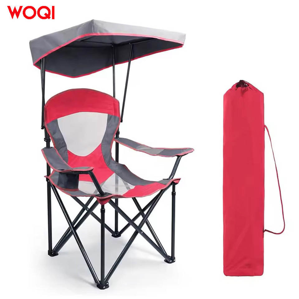 เก้าอี้พับกลางแจ้ง Woqi พร้อมร่มกันแดดแบบพกพา เก้าอี้อลูมิเนียมสำหรับสวนและตั้งแคมป์ สีชมพู ผ้า Oxford