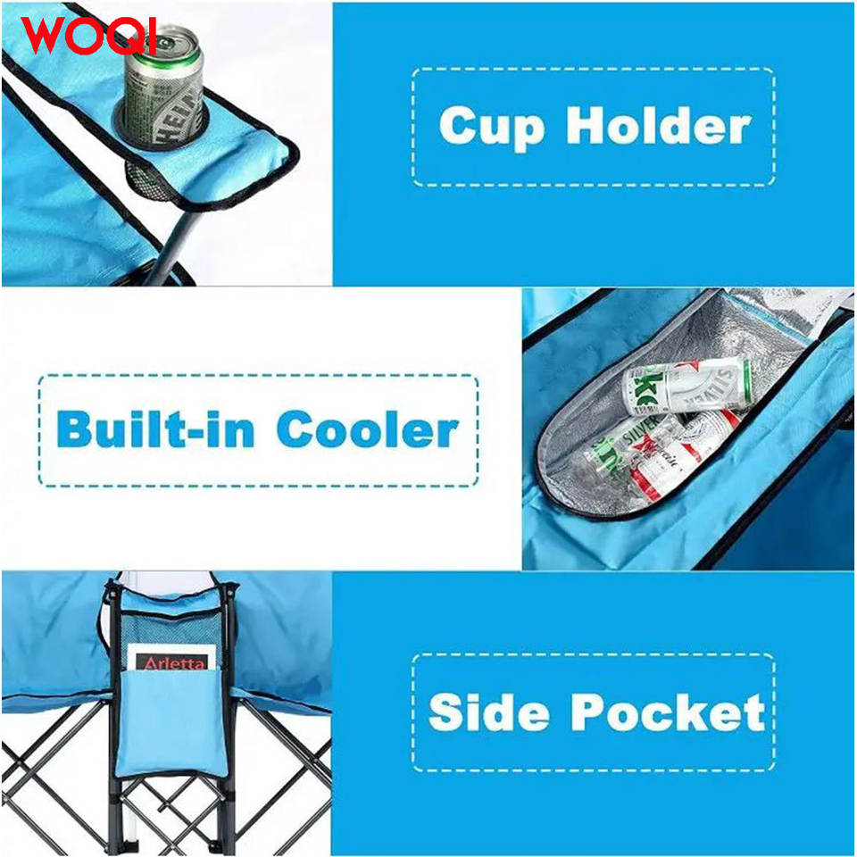 เก้าอี้ชายหาดพับได้คู่ Woqi พร้อมร่มกันแดด ผ้า Oxford สีฟ้า