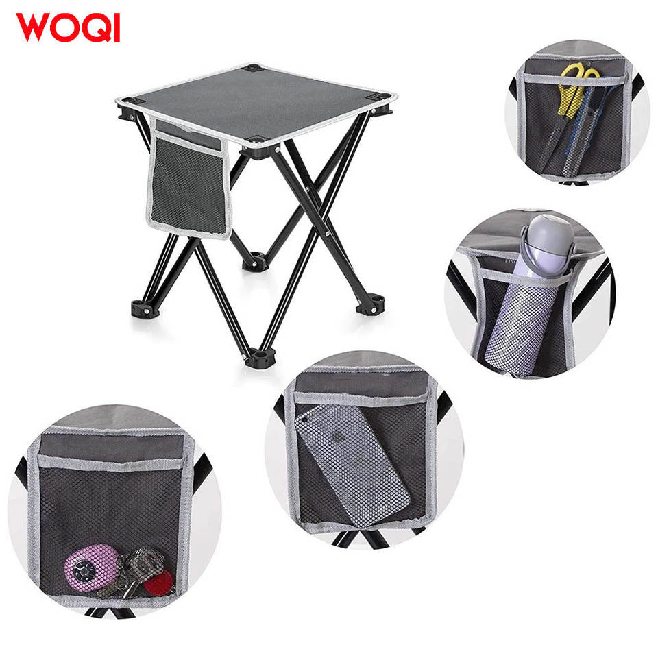 โต๊ะพับกลางแจ้ง Woqi ผ้า Oxford น้ำหนักเบา พกพาสะดวก ฐานแบบไขว้ โต๊ะสี่เหลี่ยมสำหรับตั้งแคมป์ปิกนิก พร้อมช่องตาข่าย