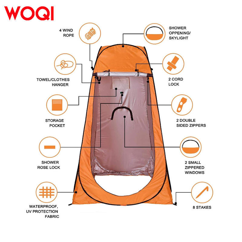 เต็นท์อาบน้ำกลางแจ้ง Woqi สำหรับ 1 คน สีส้ม กันน้ำ เต็นท์ป๊อปอัพสำหรับความเป็นส่วนตัว สำหรับตั้งแคมป์และชายหาด