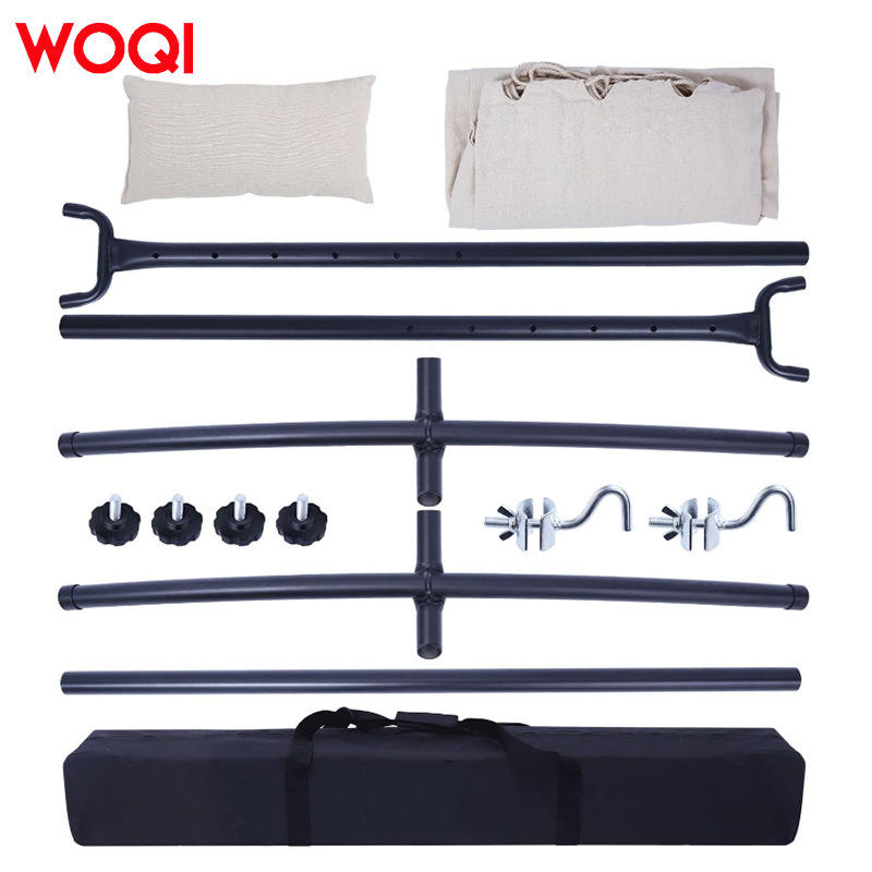 เปลญวนผ้าใบพกพา Woqi รับน้ำหนักได้ 250 ปอนด์ โครงเหล็ก สำหรับตั้งแคมป์กลางแจ้ง เตียงแกว่งสำหรับ 2 คน ดีไซน์เรียบง่าย