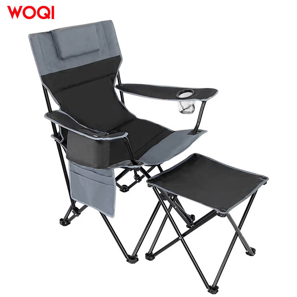 เก้าอี้พับพกพา Woqi สำหรับตั้งแคมป์ พร้อมกระเป๋าเก็บความเย็นและพนักพิงศีรษะ โครงอะลูมิเนียม ผ้า Oxford เก้าอี้สำหรับสวน