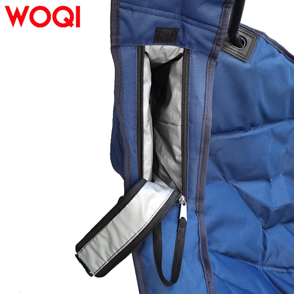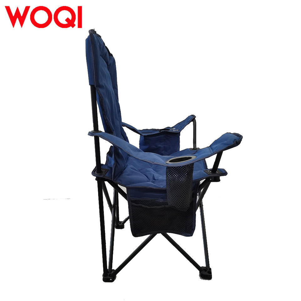 เก้าอี้ชายหาดพับได้พกพา Woqi สีน้ำเงินเข้ม บุโฟม สำหรับตั้งแคมป์และเดินทาง พร้อมช่องเก็บของแบบมีซิป