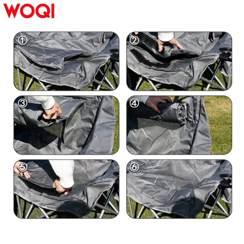 เก้าอี้พับพกพา Woqi สีเทา สำหรับใช้งานกลางแจ้งในสวน พร้อมที่วางแก้วและกระเป๋าหิ้ว ขนาด 53x50x93 ซม.
