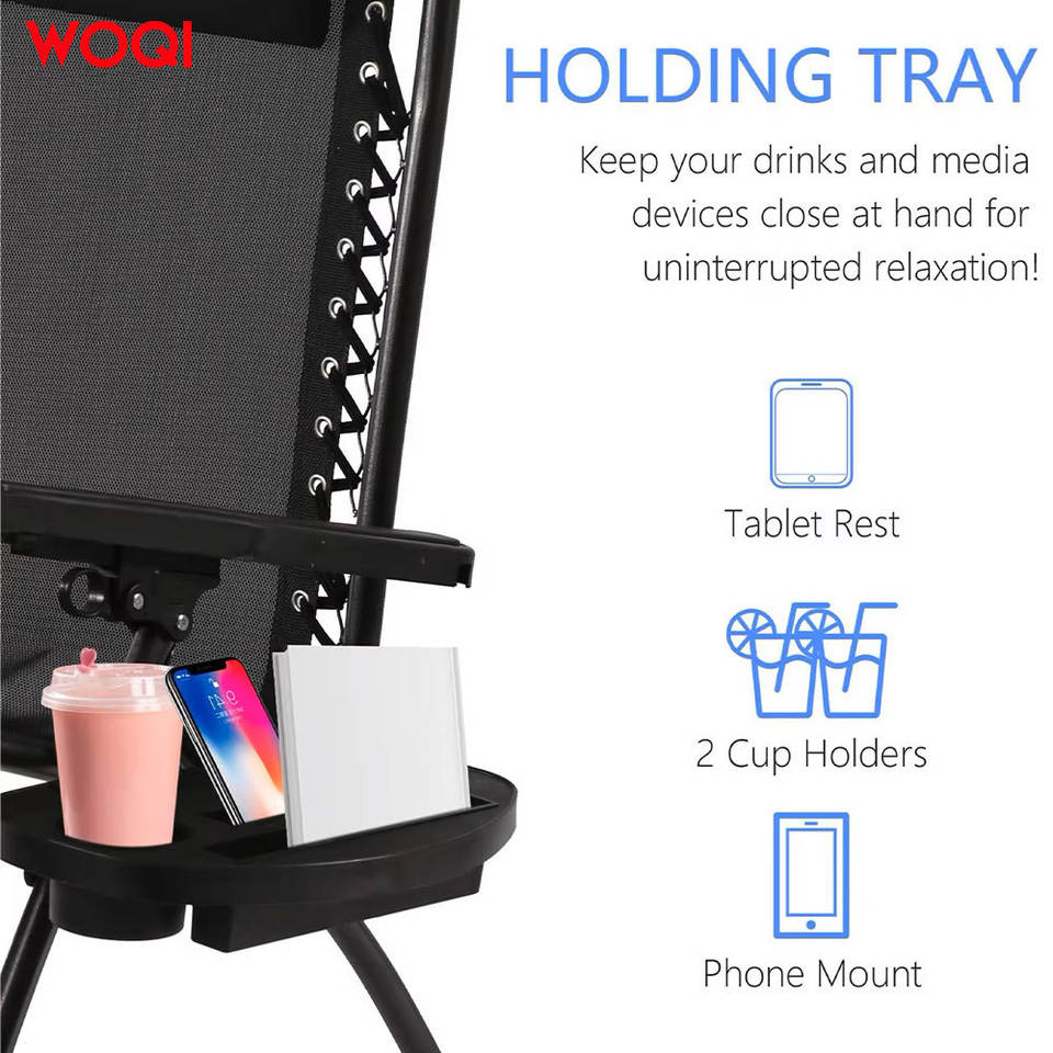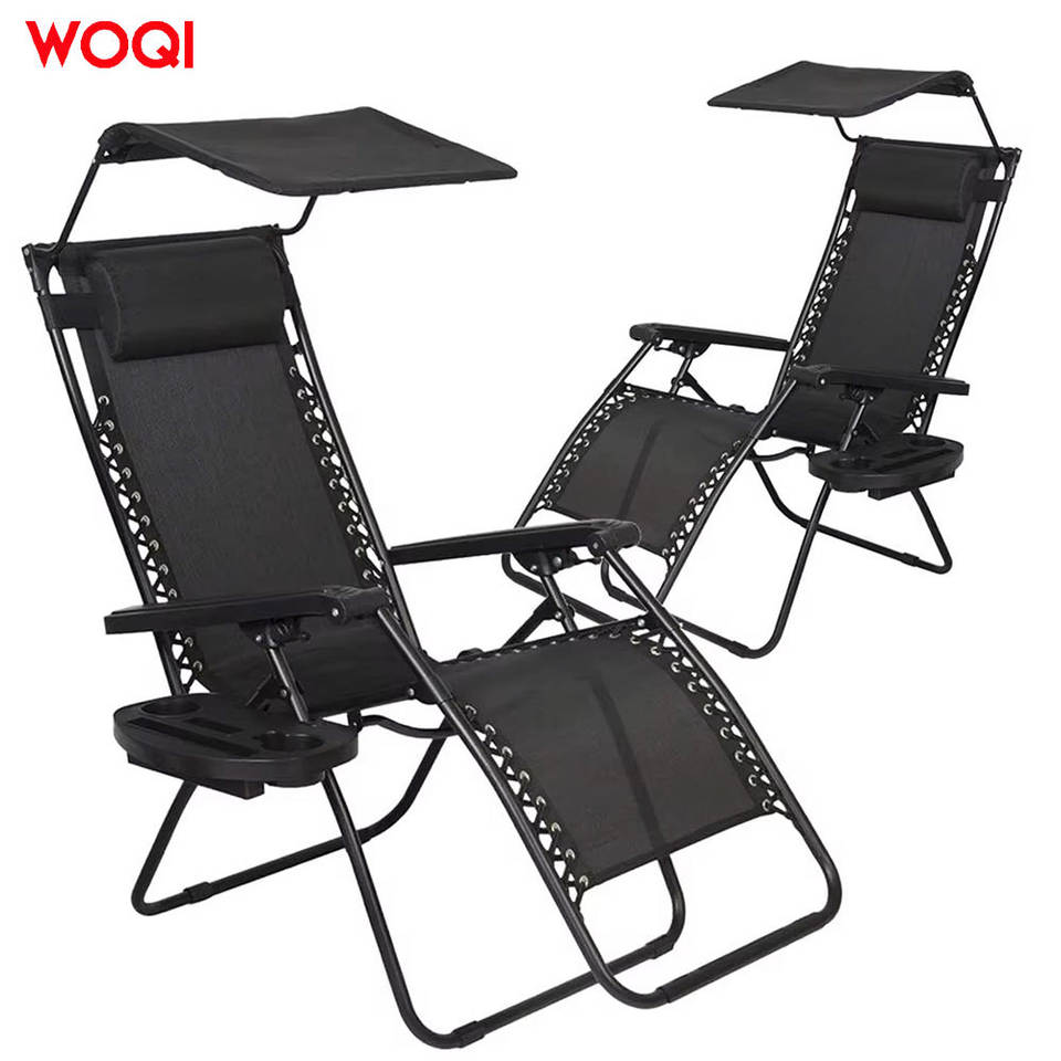 เก้าอี้พับพกพา Woqi พร้อมหลังคาและที่วางแก้ว ปรับเอนได้ ใช้กลางแจ้ง เก้าอี้สนาม สีดำ โครงเหล็กคาร์บอน