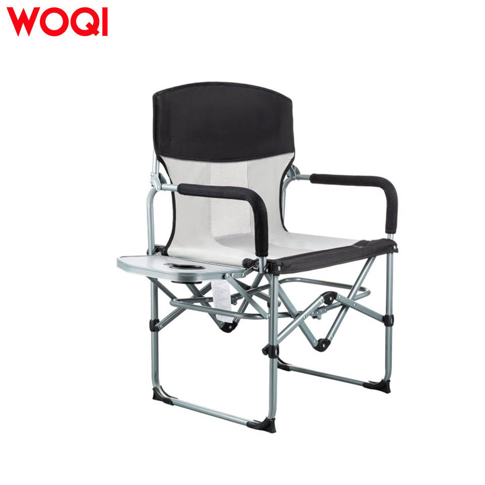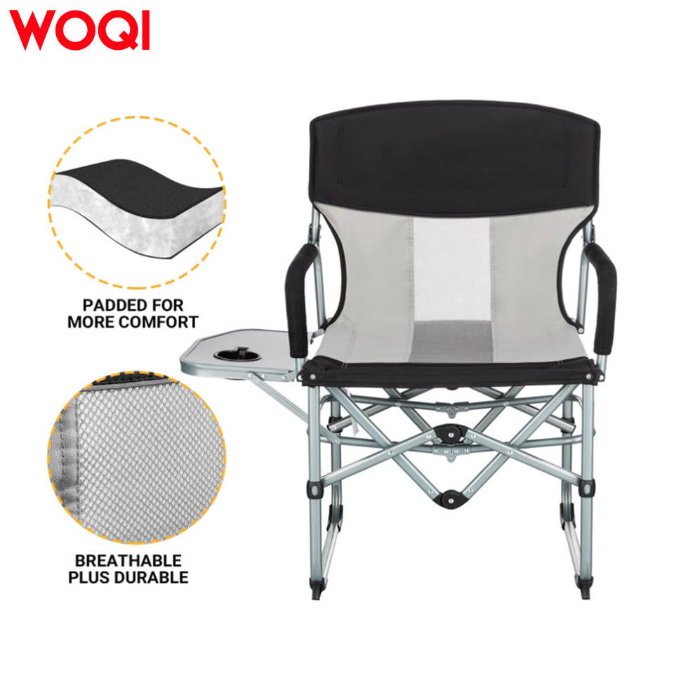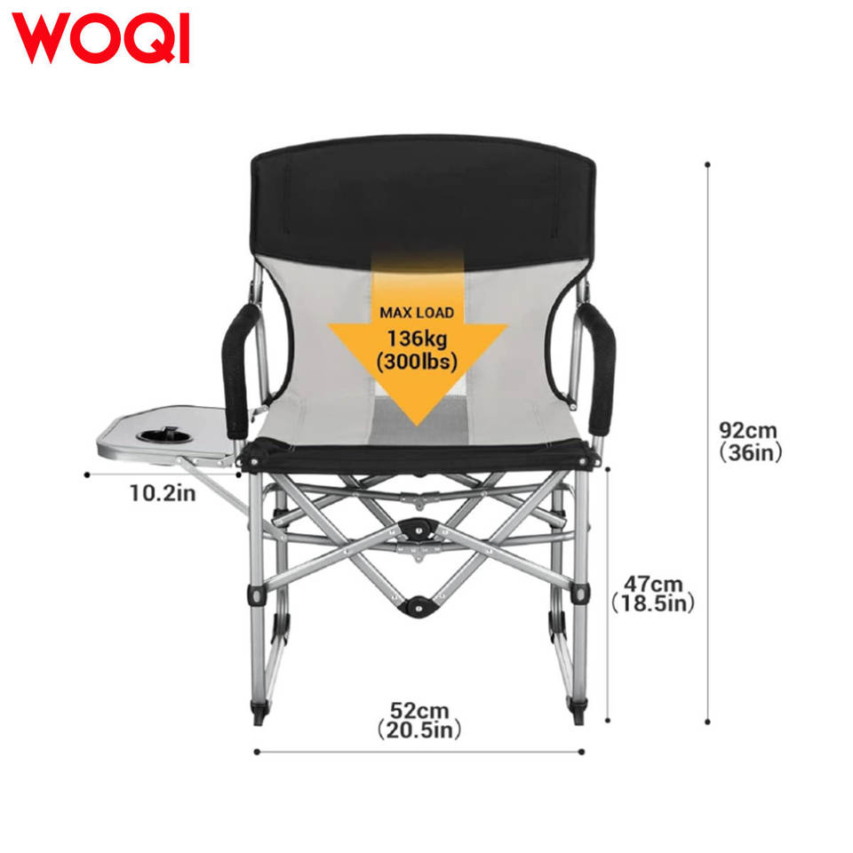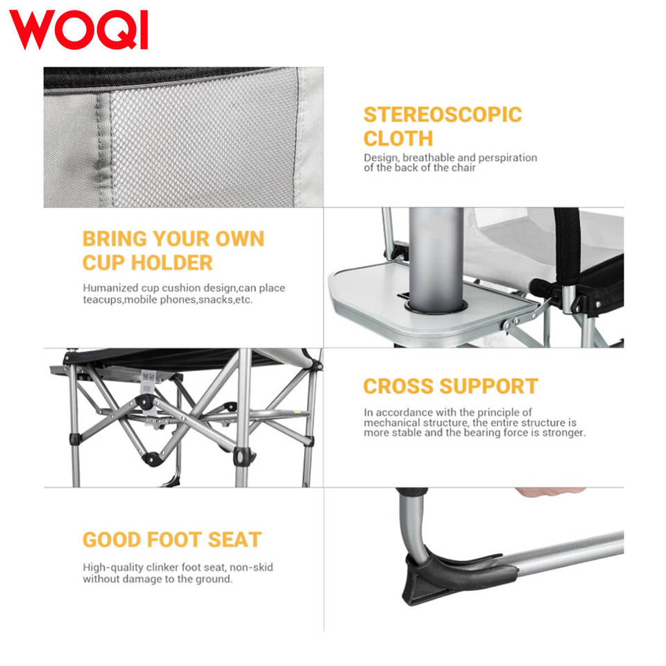 เก้าอี้พับพกพา Woqi พร้อมที่วางแก้ว ผ้า Oxford สำหรับตั้งแคมป์กลางแจ้ง สีเทาอ่อน 52.5x58.5x92.5 ซม.