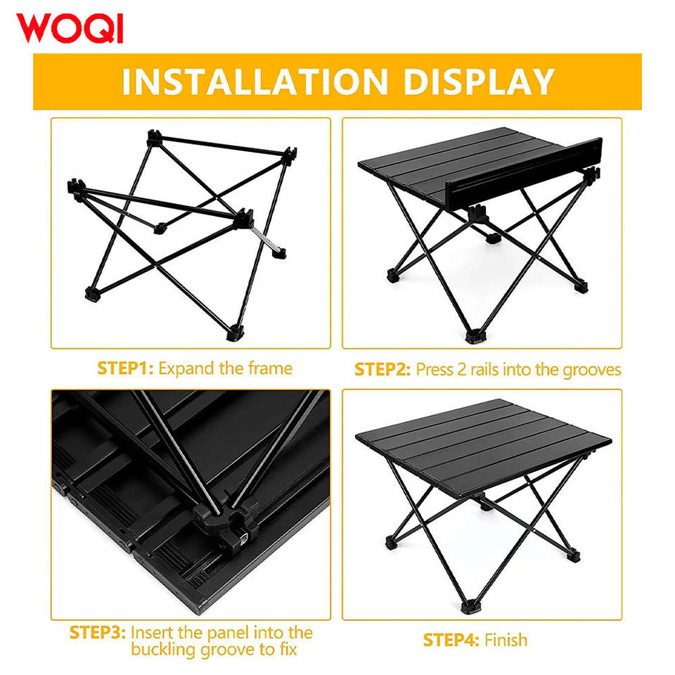 โต๊ะพับพกพา Woqi สำหรับใช้งานกลางแจ้ง โครงเหล็ก ดีไซน์มินิมอล มีขนาดเล็ก กลาง ใหญ่ เหมาะสำหรับตั้งแคมป์ สวน และชายหาด