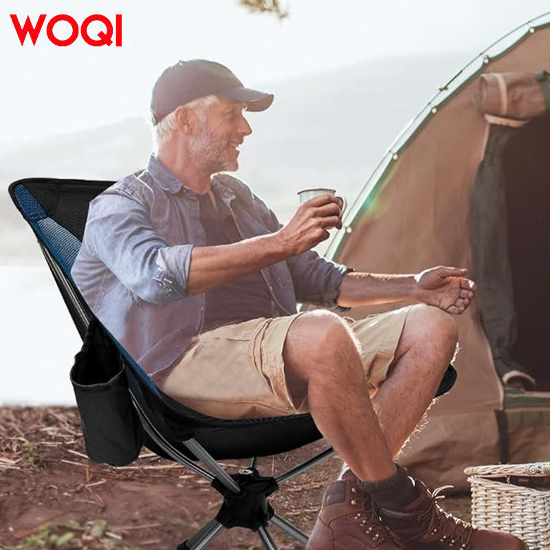 เก้าอี้พับพกพา Woqi โครงอะลูมิเนียม รับน้ำหนักได้ 140 กก. พับเก็บได้กะทัดรัด เหมาะสำหรับตั้งแคมป์กลางแจ้ง สวน สีดำ