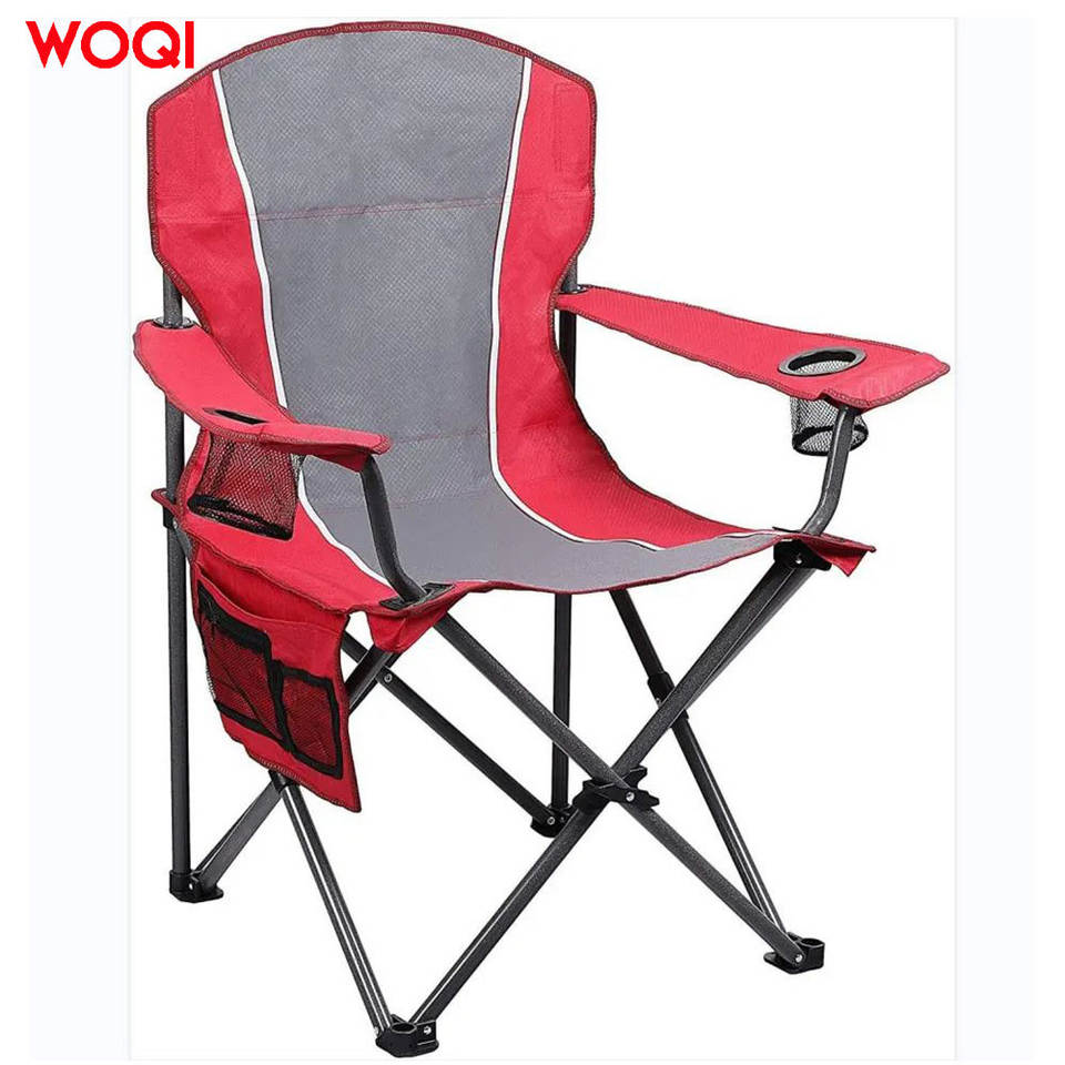 เก้าอี้พับได้สำหรับตั้งแคมป์กลางแจ้งพกพาสะดวก ยี่ห้อ Woqi โครงอะลูมิเนียม สีแดง พร้อมที่วางแก้วและช่องเก็บของ