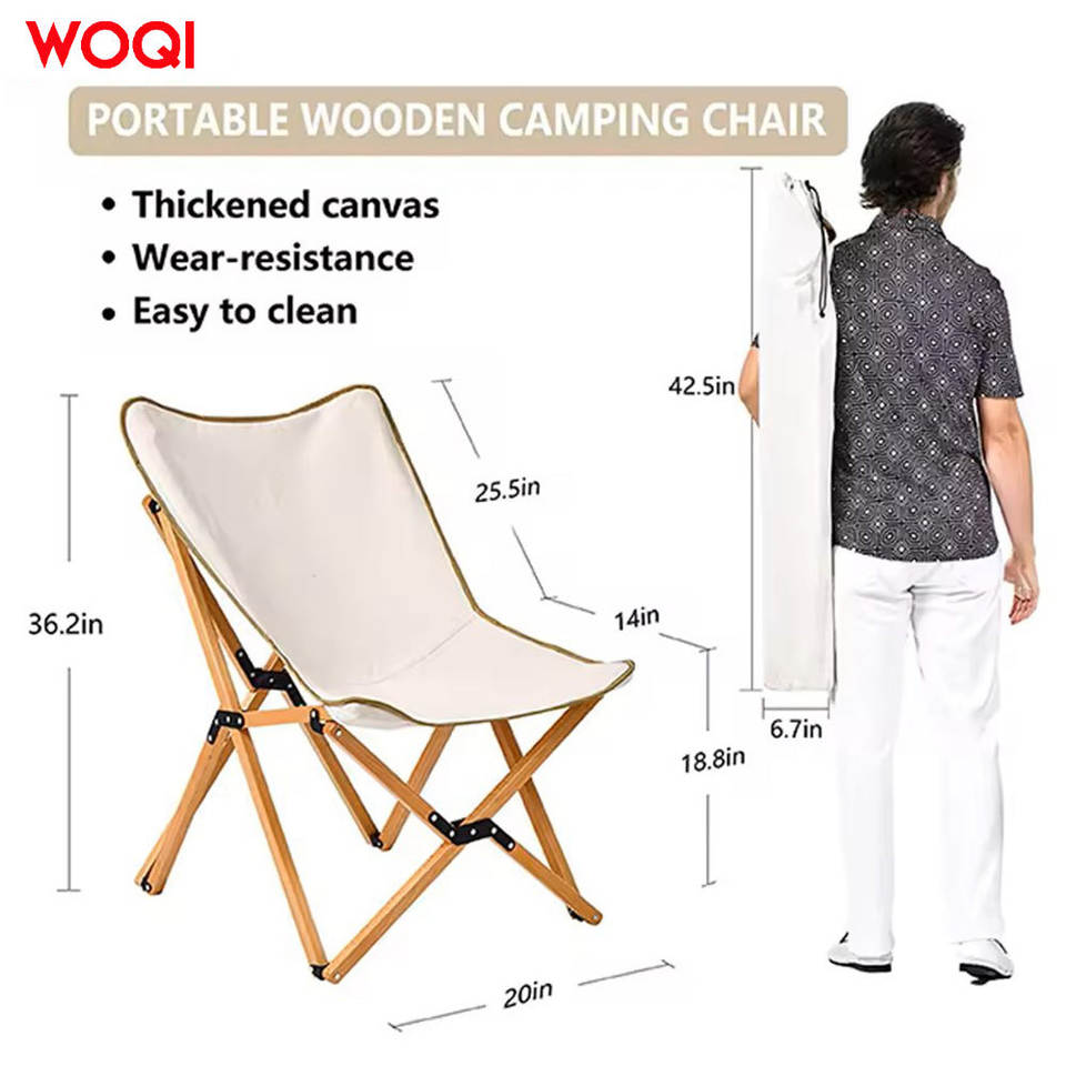 เก้าอี้พับได้พกพา Woqi ทำจากไม้ สำหรับตั้งแคมป์และกิจกรรมกลางแจ้ง สูง 36.2 นิ้ว พร้อมกระเป๋าสำหรับพกพา เหมาะสำหรับใช้ในสวนและการเดินทาง