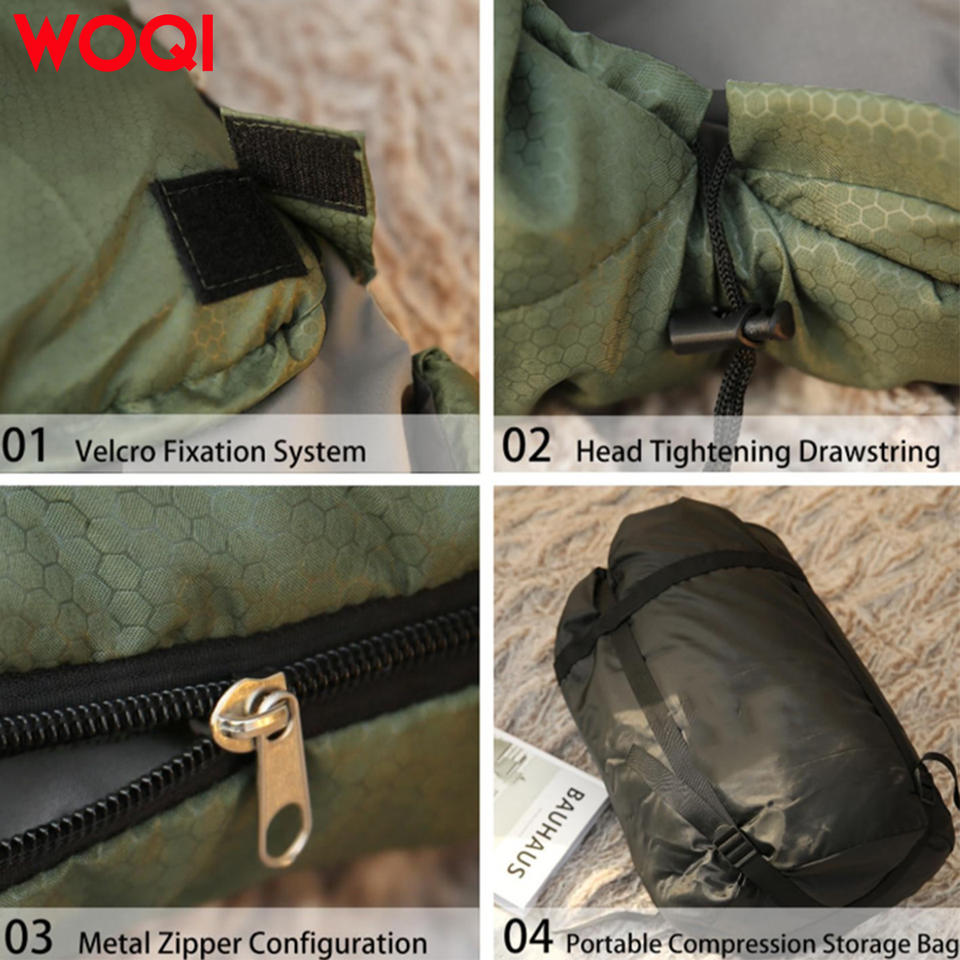 ถุงนอน Woqi 3 ฤดู แบบมัมมี่ ไนลอน กันลม น้ำหนักเบา สำหรับตั้งแคมป์กลางแจ้ง ใช้ได้ทั้งชายและหญิง สีเขียวทหาร ขนาดมาตรฐาน