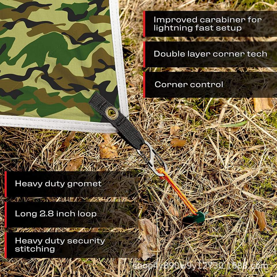 ผ้าใบกันน้ำ Woqi Tarp ขนาด 365x300 มม. สีเขียวทหาร ทำจากไนลอน สำหรับใช้เป็นที่พักแคมป์ปิ้งกลางแจ้ง รูปทรงสี่เหลี่ยม เหมาะสำหรับใช้กับเปลญวนและเต็นท์