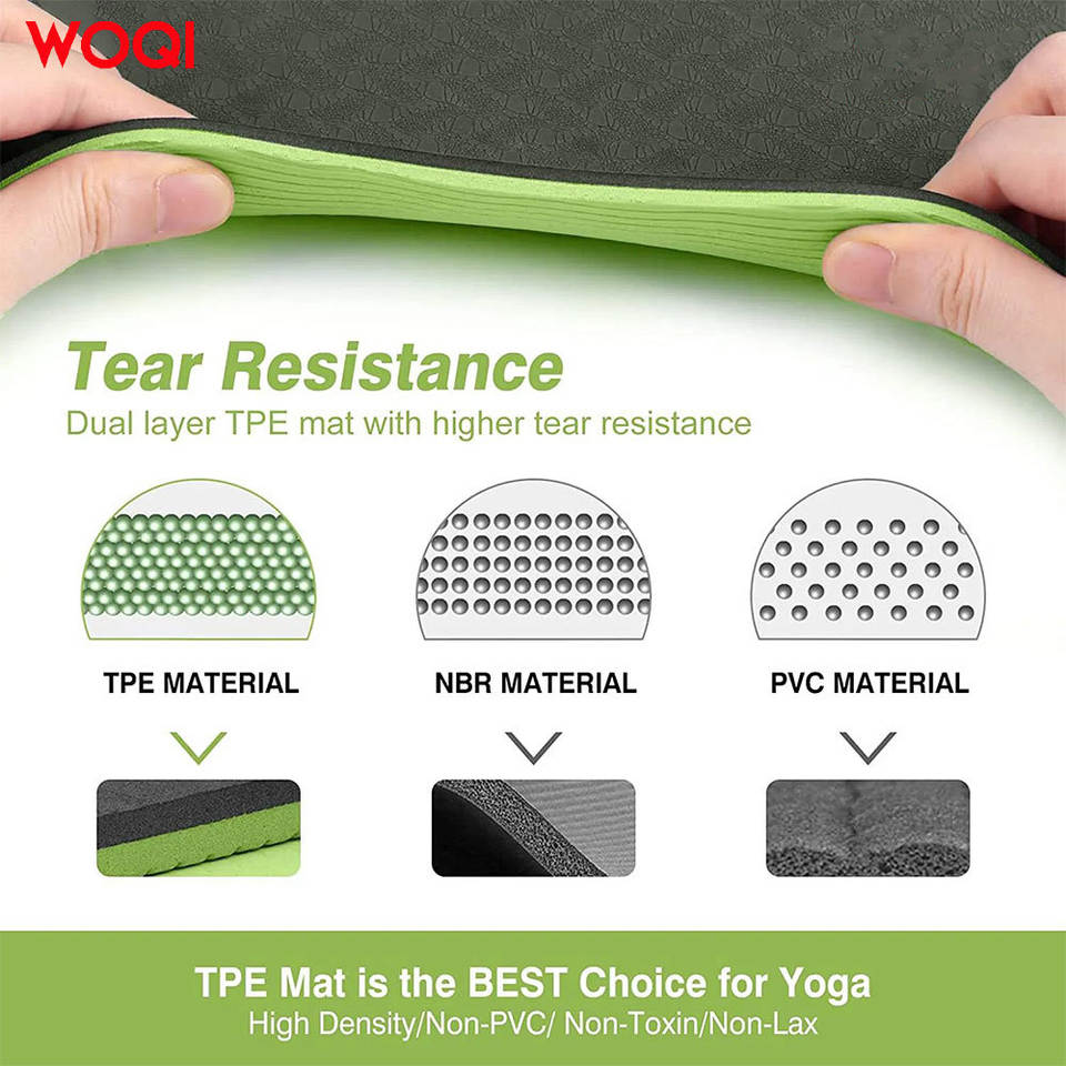 เสื่อโยคะ Woqi หนา 6 มม. ทำจาก EVA รูปทรงสี่เหลี่ยม สีเขียวหญ้า พร้อมสายสะพาย สำหรับออกกำลังกายและกระชับสัดส่วน