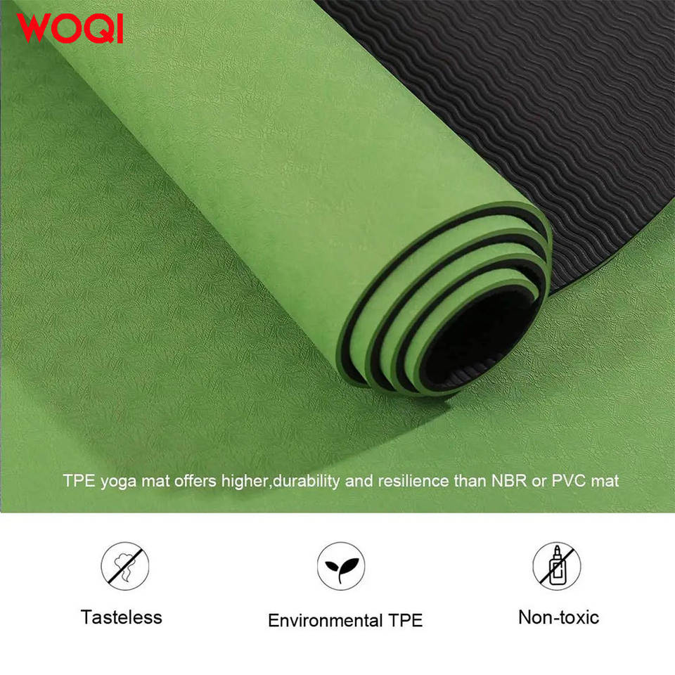 เสื่อโยคะวอคิหนา 6 มม. วัสดุ TPE กันลื่นสำหรับออกกำลังกายที่บ้านสีเขียวมรกต