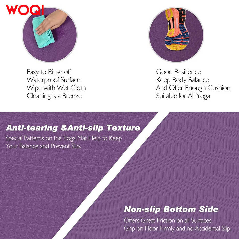 เสื่อโยคะ Woqi ขนาด 72x24 นิ้ว หนา 4 มม. กันลื่น สีม่วง ทำจาก TPE สำหรับผู้หญิง ออกกำลังกาย เต้นรำ ใช้ในบ้าน