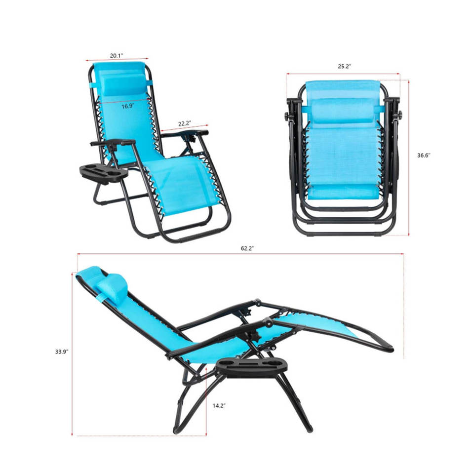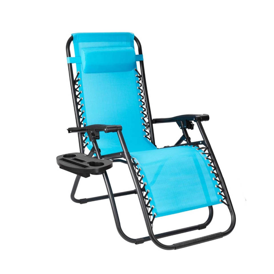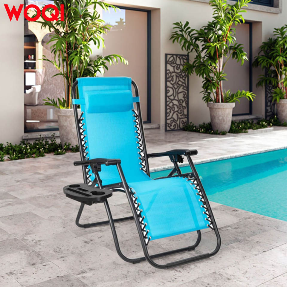 เก้าอี้พักผ่อนกลางแจ้ง Woqi Zero Gravity สีน้ำเงิน ปรับเอนได้ พร้อมที่วางแก้ว สำหรับริมสระน้ำและตั้งแคมป์