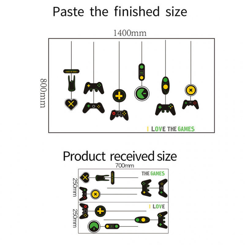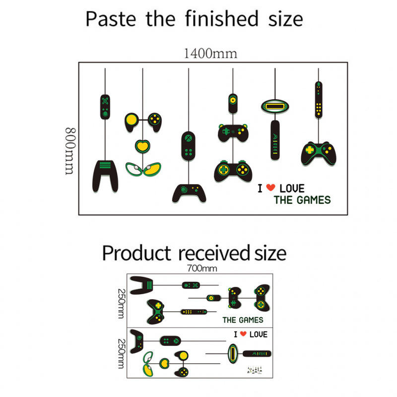 สติ๊กเกอร์ติดผนังลายคำว่า “I Love the Games” สำหรับตกแต่งบ้าน ห้องนอน ห้องเด็กผู้ชาย ลายจอยเกมส์ วัสดุไวนิล