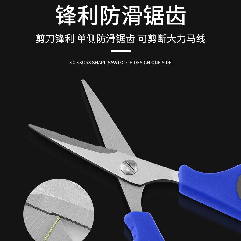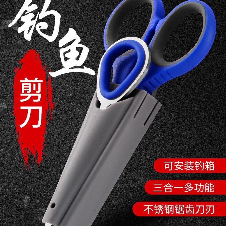 กรรไกรตกปลาสแตนเลสสีน้ำเงิน 3 in 1 สำหรับถอดเบ็ด ตัดสายเอ็น และตัดไดนีม่า