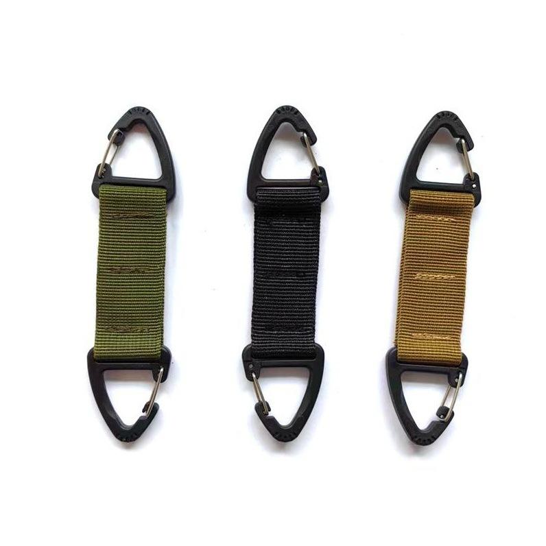 คาราบิเนอร์แบบยุทธวิธีสำหรับบันทึกการทำงาน สายรัดไนลอนแบบตะขอเกี่ยว หัวเข็มขัดแบบสองจุด สีดำ อุปกรณ์ปีนเขาสำหรับกิจกรรมกลางแจ้ง