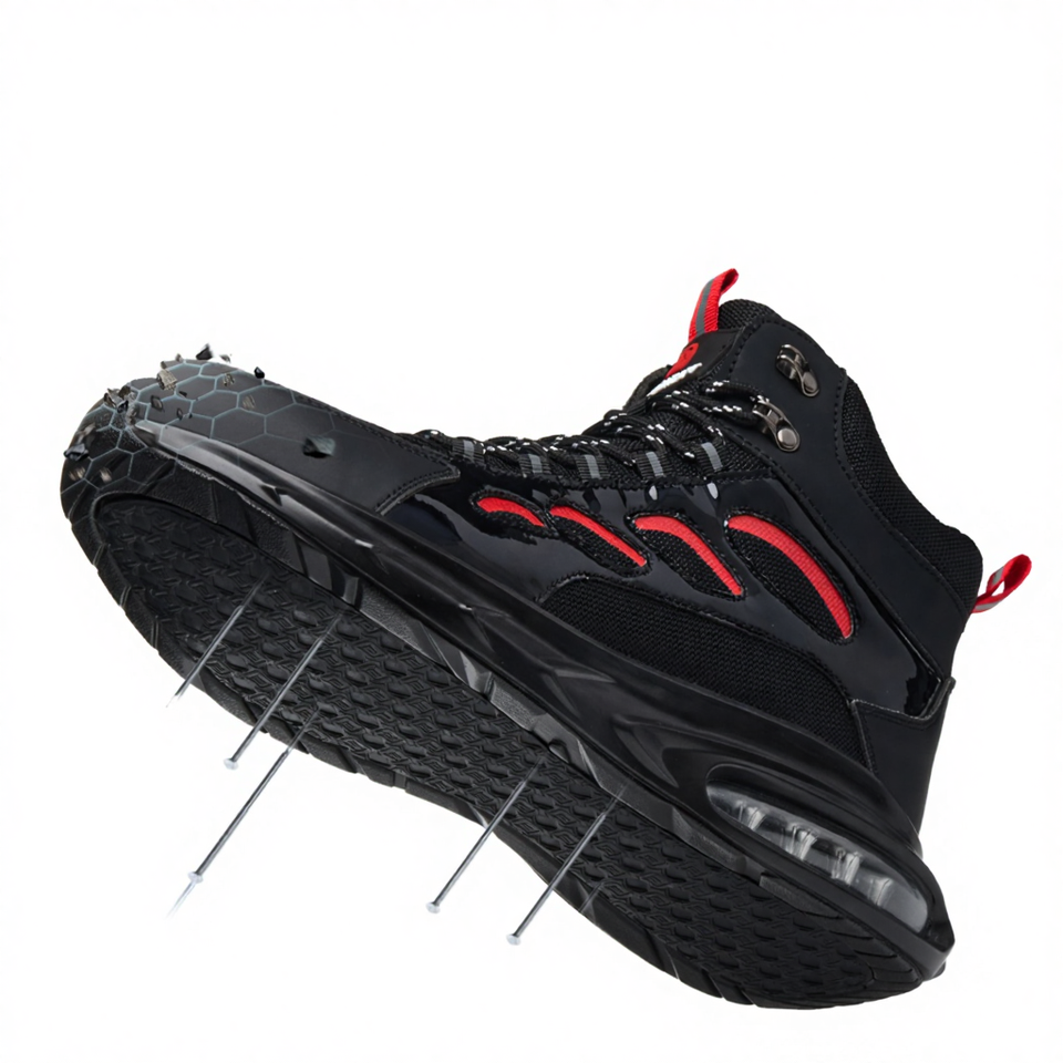รองเท้าบูทนิรภัยหุ้มข้อเหล็ก ป้องกันการเจาะทะลุ พื้นรองเท้าด้านนอกทำจากยาง ทนทานต่อแรงกระแทก ใช้ได้ทุกฤดู เหมาะสำหรับโรงงาน