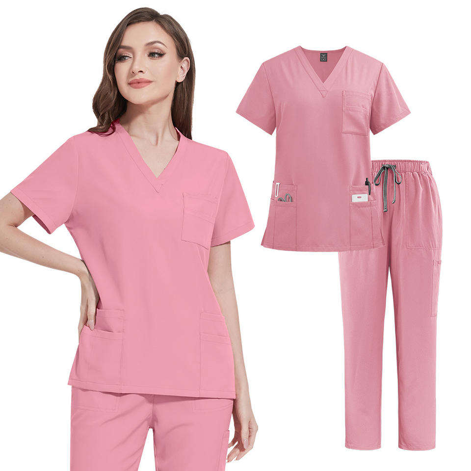 ชุดยูนิฟอร์มพนักงานโรงพยาบาลแบบ unisex ชุดสครับผ้าเนื้อยืดใส่สบาย ชุดทำงานพยาบาล เสื้อแขนสั้น กางเกงขายาวทรงตรง