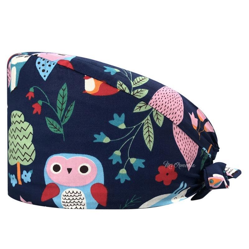 หมวกทำงานระบายอากาศได้ดีสำหรับโรงพยาบาลหมวกผูกด้านหลังระบายอากาศได้หมวกขัดฟันมีกระดุมพิมพ์ลายน่ารัก