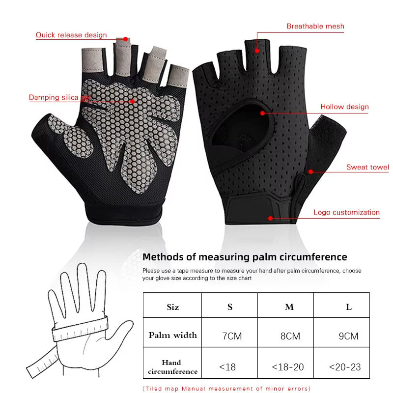 ถุงมือออกกำลังกาย ถุงมือยกน้ำหนัก ถุงมือฟิตเนส ถุงมือปั่นจักรยาน ถุงมือฝึกซ้อม ถุงมือยิม ป้องกันฝ่ามือเต็มรูปแบบ รองรับข้อมือ ตาข่ายกันน้ำ