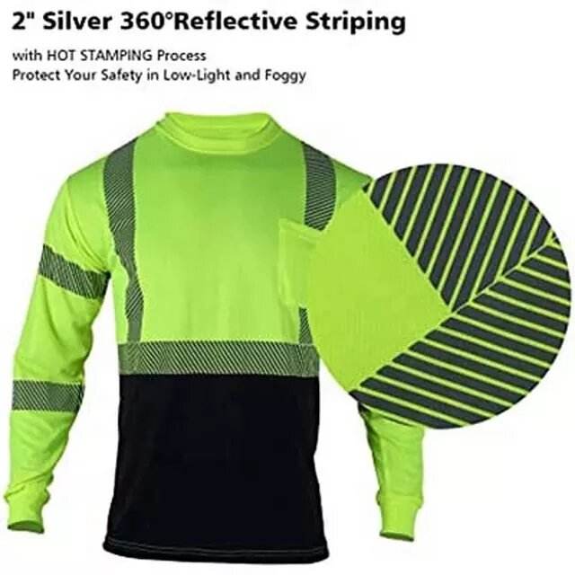Workwear Hi Viz Fitted t Shirt Mechanical Mens Clothing Construction Work Uniform Safety Shirts Long Sleeve