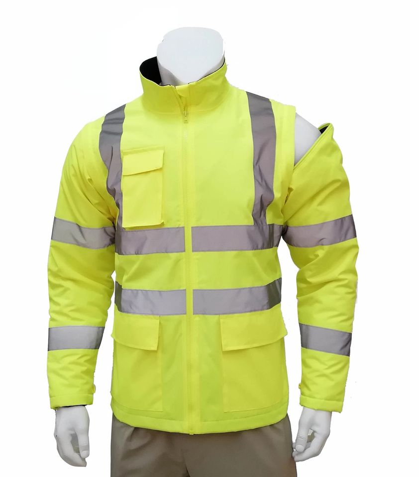 เสื้อกันหนาวมีฮู้ดสำหรับความปลอดภัยในการก่อสร้างเสื้อแจ็คเก็ตสำหรับใส่ทำงานบนท้องถนนทัศนวิสัยที่ชัดเจน