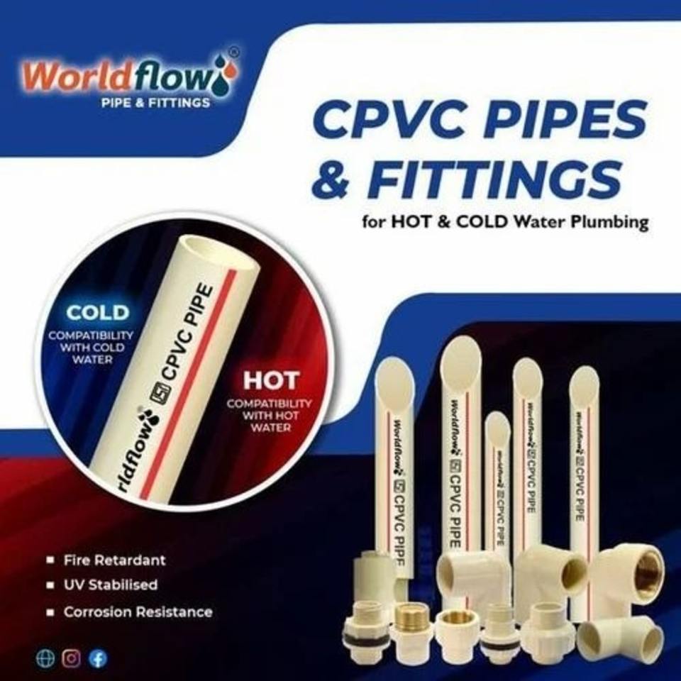 ท่อ cpvc เกรดอุตสาหกรรม3/4นิ้ว World flow ความยาว3เมตร50/แพ็คทนต่อการเชื่อมด้วยสารเคมี UV ทนต่อแรงดันสูง
