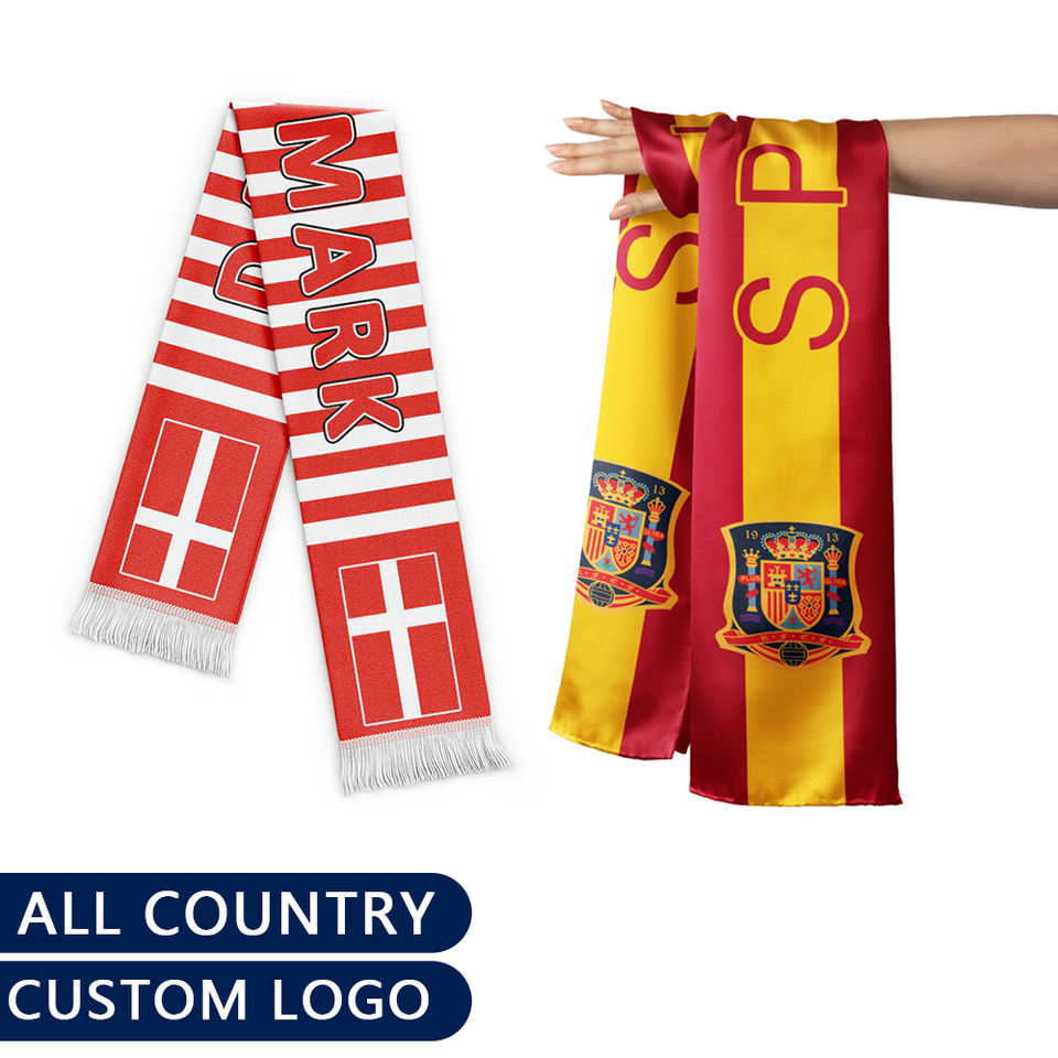 ผ้าพันคอแฟนฟุตบอลพิมพ์ลายดิจิตอลผ้าซาตินถักแบบกำหนดเองสำหรับฤดูใบไม้ผลิสำหรับผู้ชาย