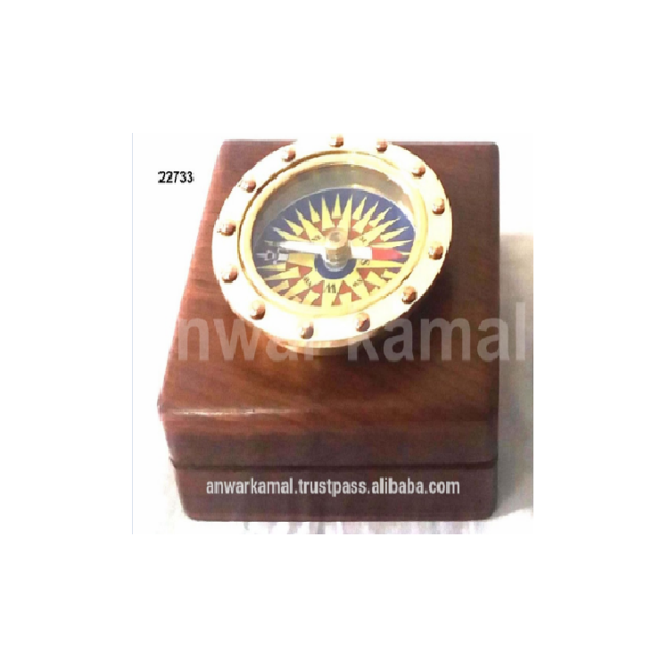 โลกของเข็มทิศกระเป๋าทองเหลืองโบราณพร้อมกล่องไม้