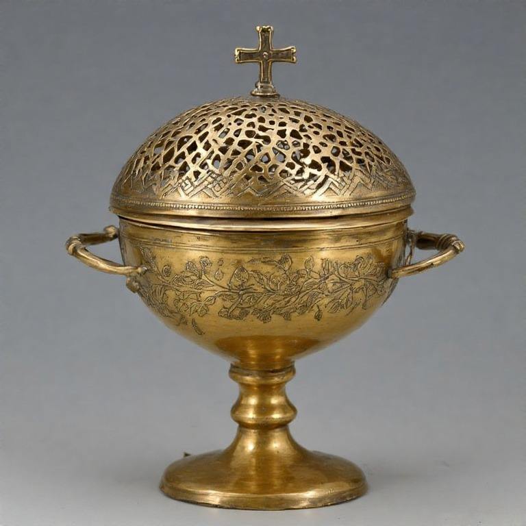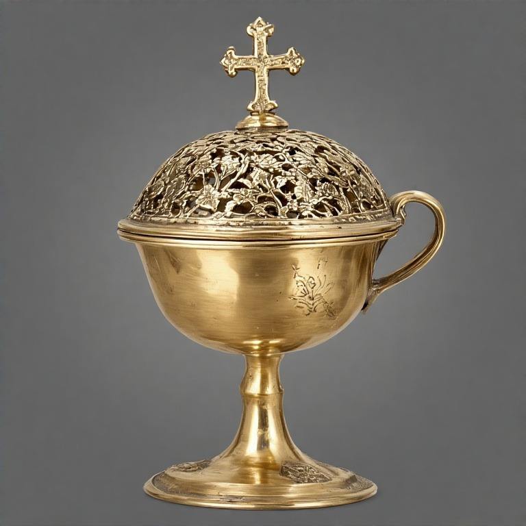 เครื่องจุดธูปโลหะประดับรูปควันอันศักดิ์สิทธิ์ที่มีโซ่ทองเหลืองขัดเงาแบบดั้งเดิมในโบสถ์