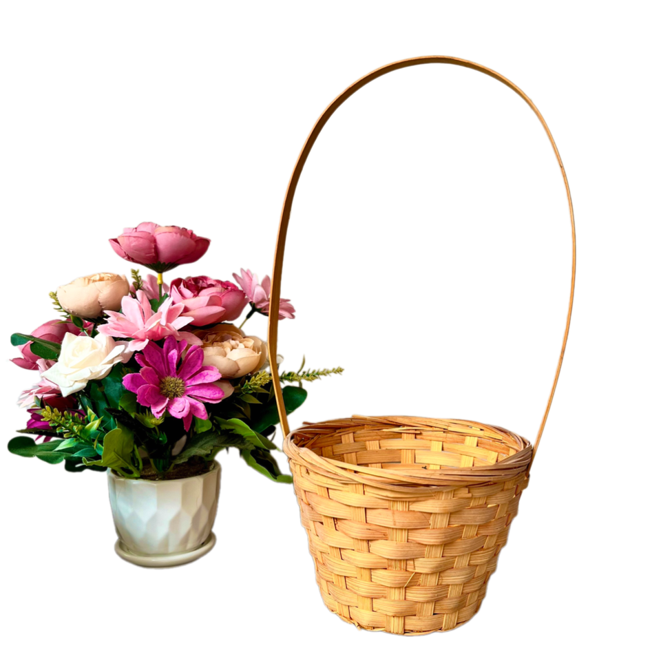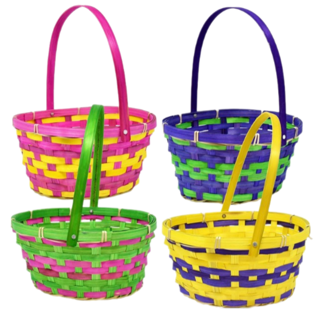 ตะกร้าไม้ไผ่สานขนาดเล็กพร้อมที่จับถังสำหรับการล่าไข่อีสเตอร์อุปกรณ์งานเลี้ยงปิคนิคอุปกรณ์ตกแต่งวันเกิด