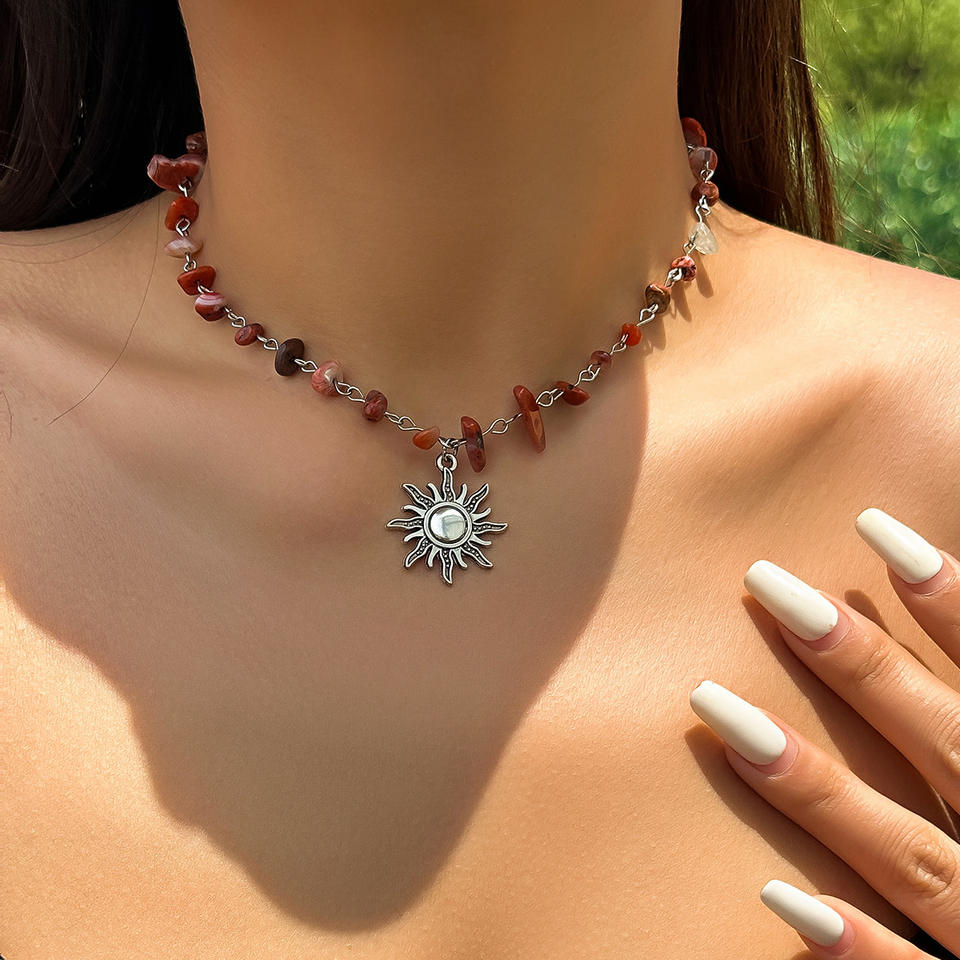 สร้อยคอทองเหลืองชุบทองสำหรับผู้หญิง ยูเนียน 1375 ดีไซน์ทันสมัย รูปทรงหินกรวดหลากสี รูปทรงแมลงปอ ดวงอาทิตย์ และดาว