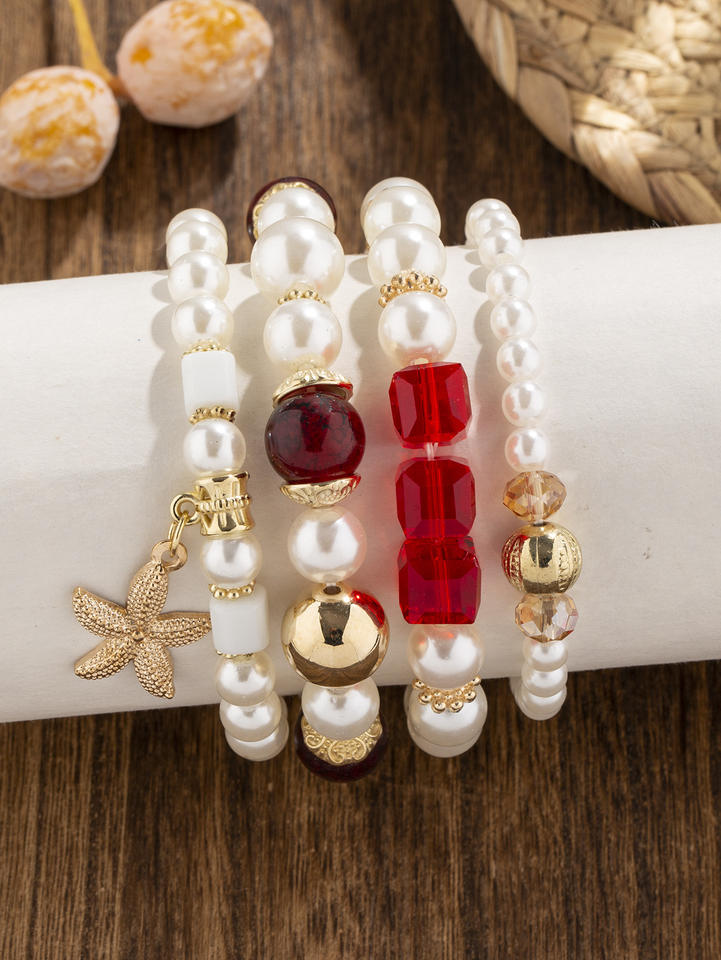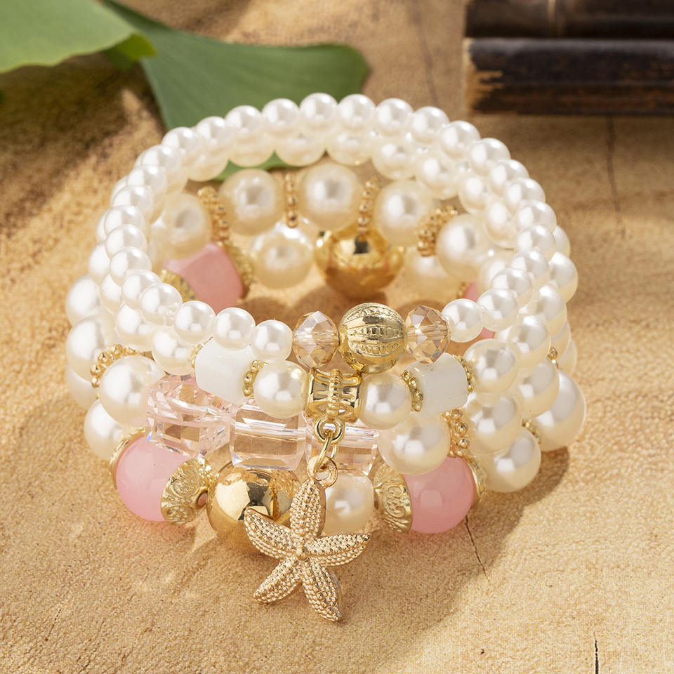 Woven Classic Copper Alloy Starfish Bracelet Set with Pendant Trendy Women's Chain & Link Jewelry in Silver Anniversary