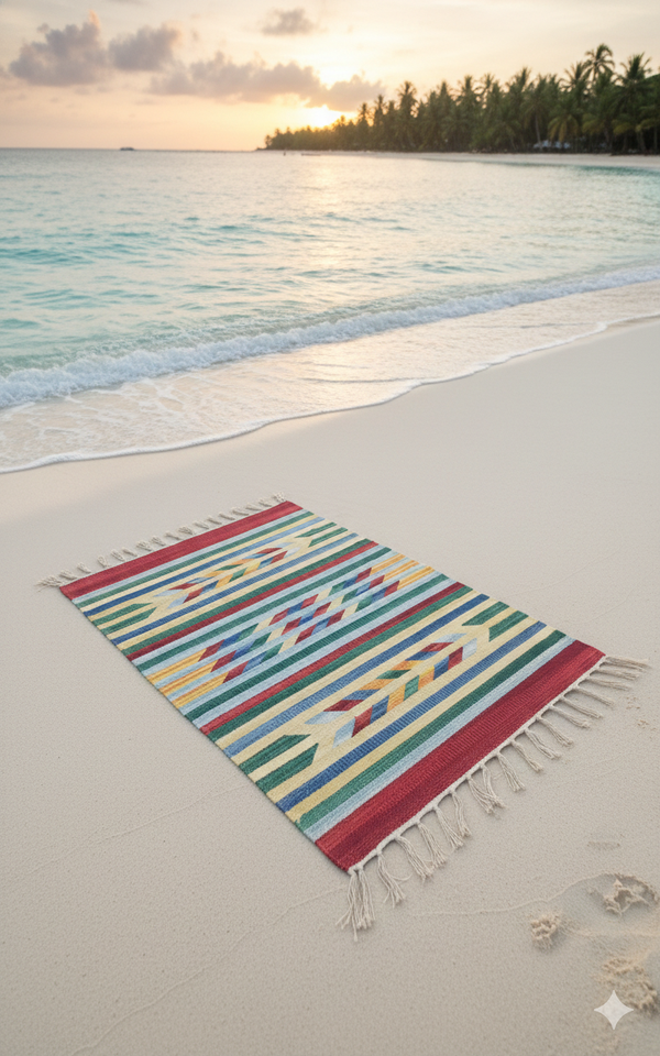 พรมผ้าฝ้ายทอเนื้อนุ่มทรงสี่เหลี่ยมผืนผ้า ด้านหลังแบบกลับด้านได้ ซักเครื่องได้ ลายดอกไม้ สำหรับใช้ในบ้าน แคมป์ปิ้ง และการเดินทาง