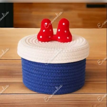 ตะกร้าเก็บเชือกหวายทำจากผ้าฝ้ายทอมือ