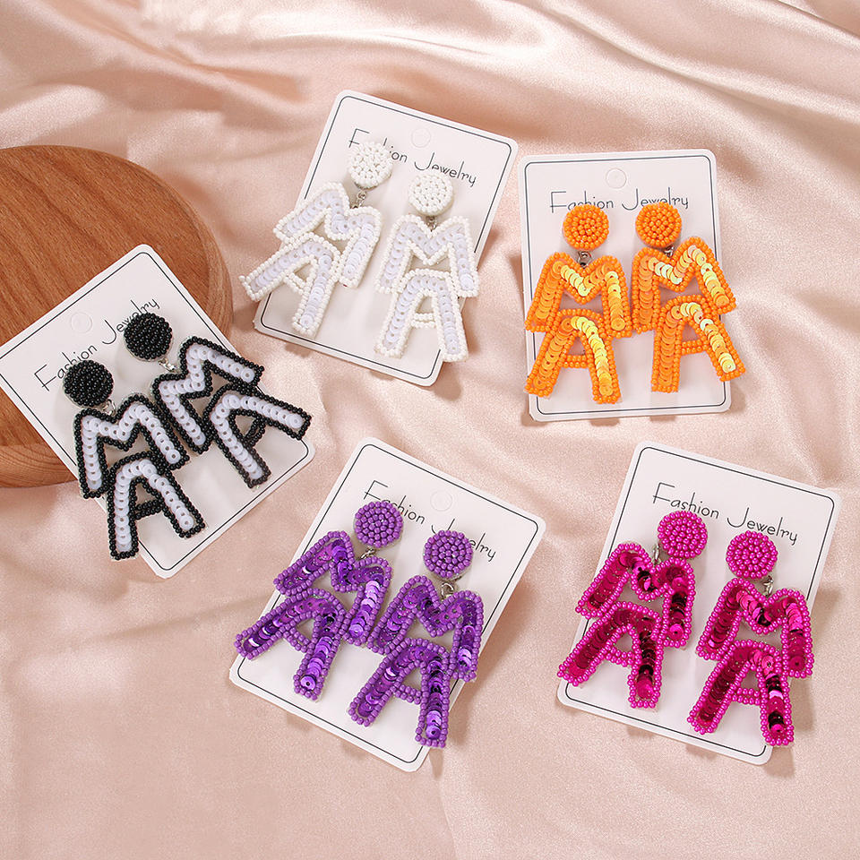 ต่างหูทอสำหรับสตรี Uionen 1862ต่างหูแบบลูกปัดรูปตัวอักษรที่สร้างสรรค์สำหรับวันแม่