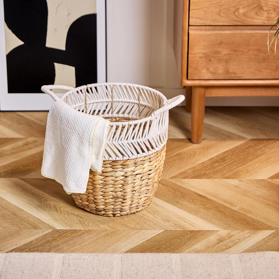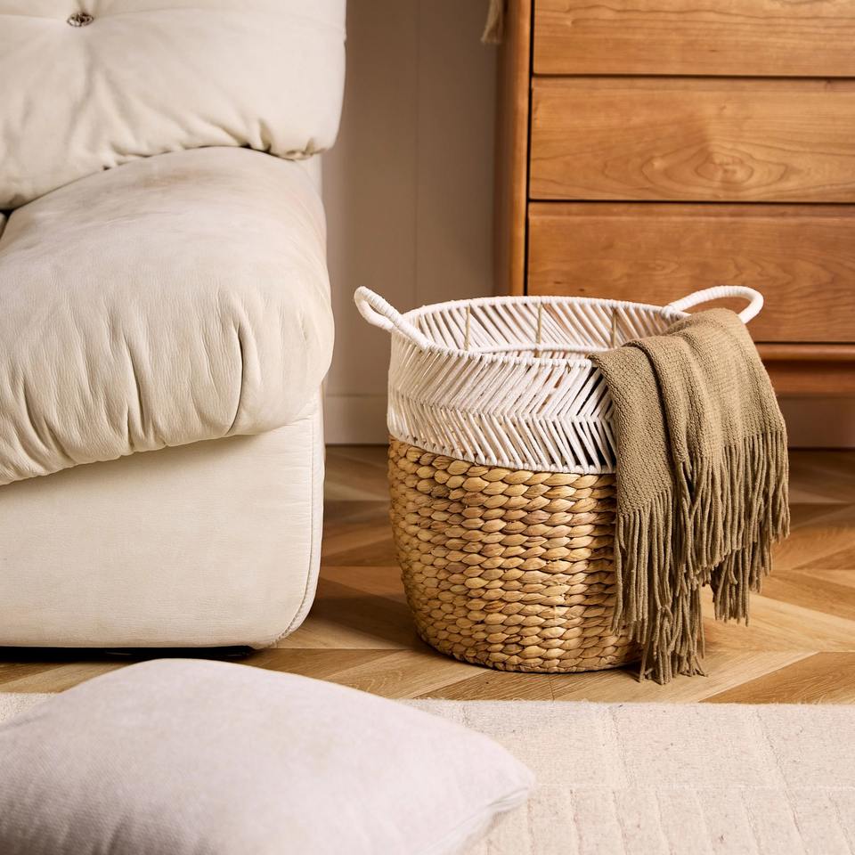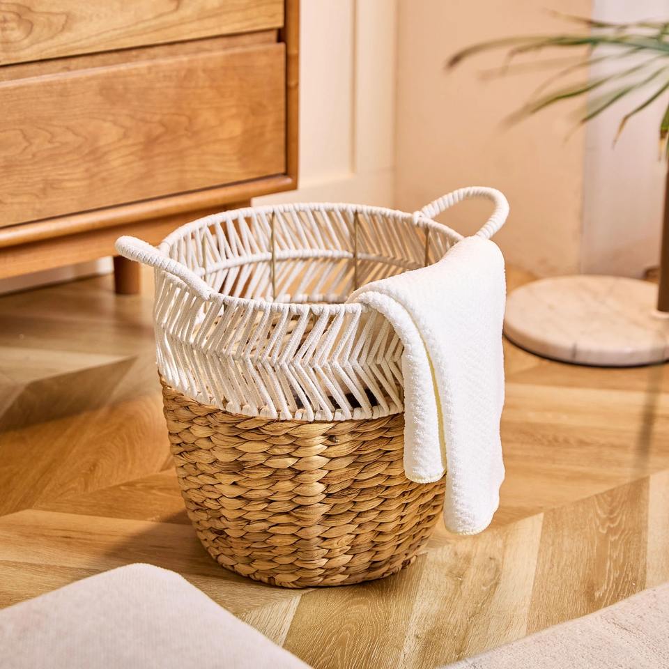 ตะกร้าเก็บของเชือกและผักตบชวา