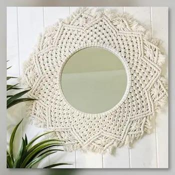 กระจกติดผนังงานถักทอลายมาคราเม่แบบแขวนติดผนังลายโบโฮตกแต่งด้วยลวดลายที่ทำด้วยมือสำหรับห้องนอนห้องนั่งเล่นและการตกแต่งภายใน