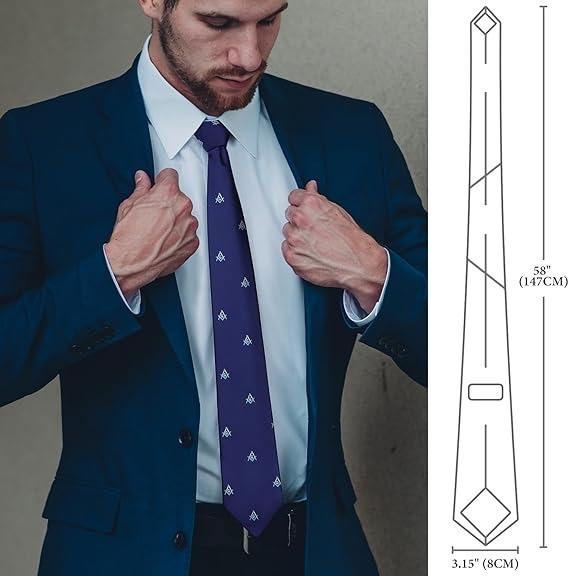เนคไททอสำหรับฟรีเมสัน เนคไทแฟชั่นสำหรับผู้ชาย พร้อมสัญลักษณ์สี่เหลี่ยมและเข็มทิศของสมาคมฟรีเมสัน ซักเครื่องได้