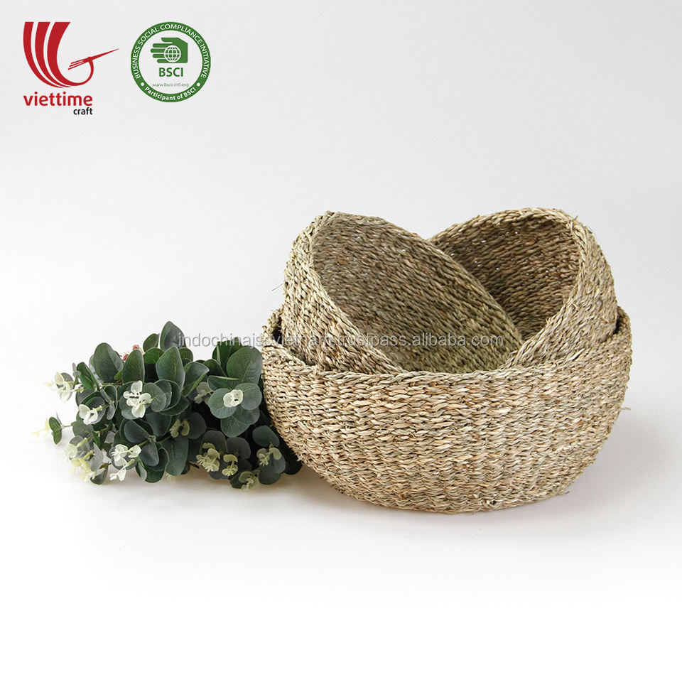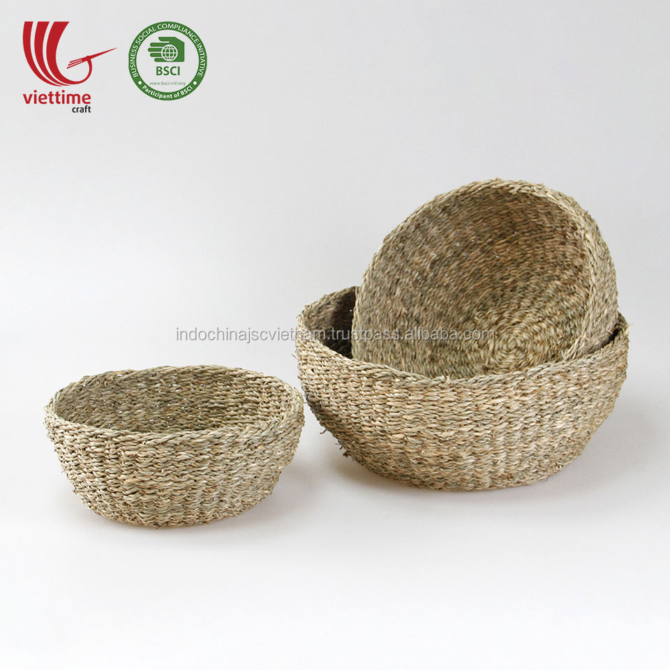 ชุดตะกร้าสานจากหญ้าทะเลสานทรงชามธรรมชาติ3ชิ้น