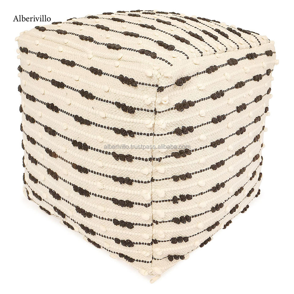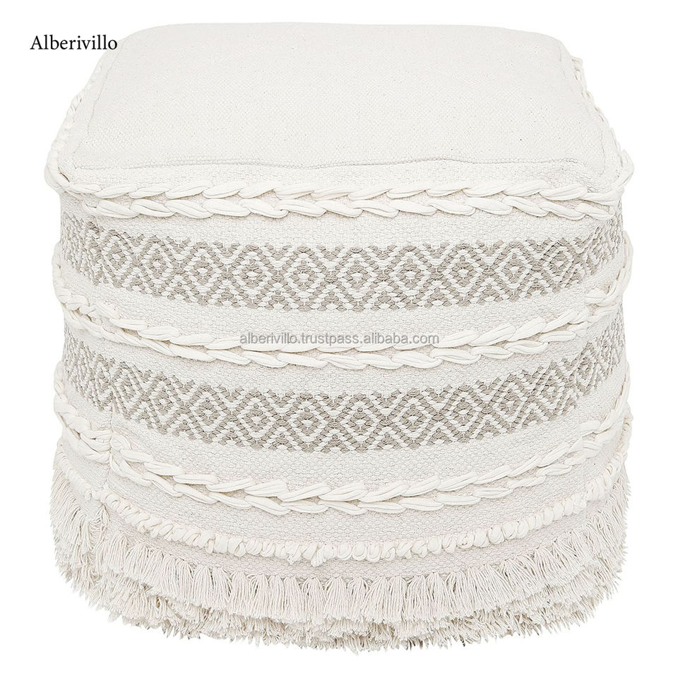 ทอออตโตมัน Pouf ที่มีคุณภาพสูงที่ทำด้วยมือ Boho ผ้าออกแบบสแควร์ Poufs สำหรับห้องนั่งเล่นตกแต่ง